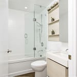 The unit has 2 bedrooms and 2 bathrooms, and with work from home becoming the norm for a lot of people, the second bedroom can be easily converted into an office. With Smart Home technology throughout, with CAT5 wiring and dimmable light switches, it’s a space in the city that is sure to impress. The master bathroom also features a steam shower with a built-in Caesarstone Bench so that you can enjoy a spa-like setting in the comfort of your home.