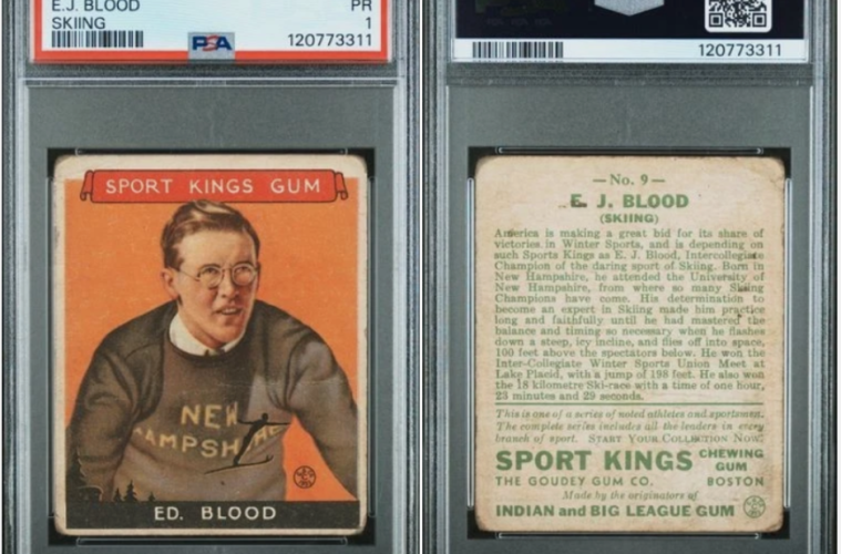 February 7, 2026: In honor of the Winter Olympics getting underway, collectors and ski historians are revisiting a rare piece of sports history: the 1933 Goudey “Sports Kings” card featuring Olympic skier Ed Blood. Blood was one of America’s earliest alpine skiing pioneers, representing the nation during the sport’s formative international years.