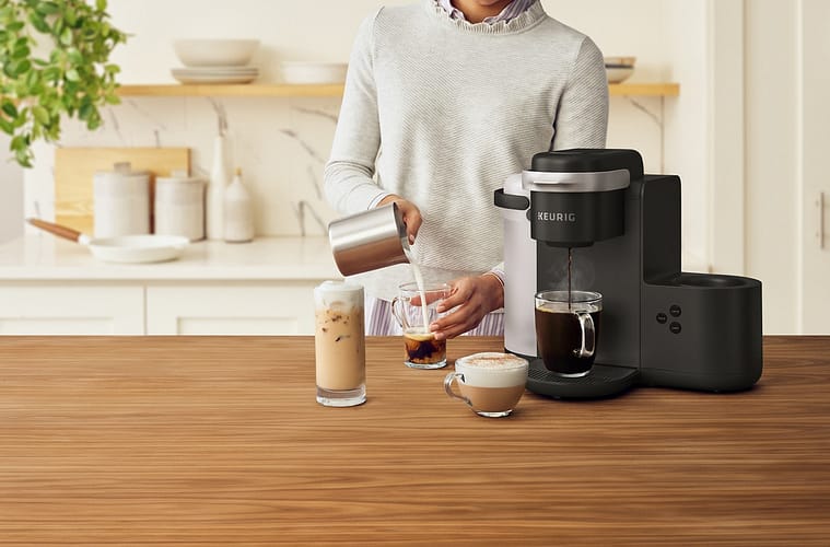 Enjoy the rich, full-flavoured coffee you love or delicious coffeehouse beverages from the new Keurig® K-Café® single-serve coffee, latte, and cappuccino maker.Whether brewing coffee, or making lattes, and cappuccinos, the K-Café coffee maker works with any recyclable* K-Cup® pod so the options are endless. Use the coffee SHOT to brew a concentrated shot of coffee and froth your choice of fresh milk to create a creamy latte or frothy cappuccino. Enjoy your latte or cappuccino hot or use the COLD setting to froth cold milk for a wonderfully refreshing iced latte or cappuccino. Brew 177, 237, 296, and 355 ml (6, 8, 10, or 12 oz) of your favourite coffee, tea, or cocoa – select Strong Brew when you want a bolder cup of coffee. The dishwasher-safe frother makes clean-up a breeze – enjoying delicious specialty beverages at home has never been so easy. Just brew, froth, enjoy! (Recyclable in select locations. Visit Keurig.ca/recyclable for more information).