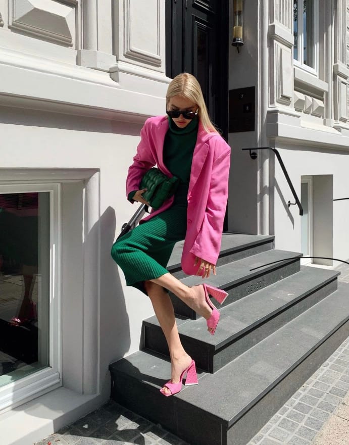 If vibrant colour is a little too much for you, just opt for a simple white or nude suit, and let a pastel shoe do all the talking. Pastels are much calmer and perfect for everyone who doesn’t want to risk it with saturated tones.