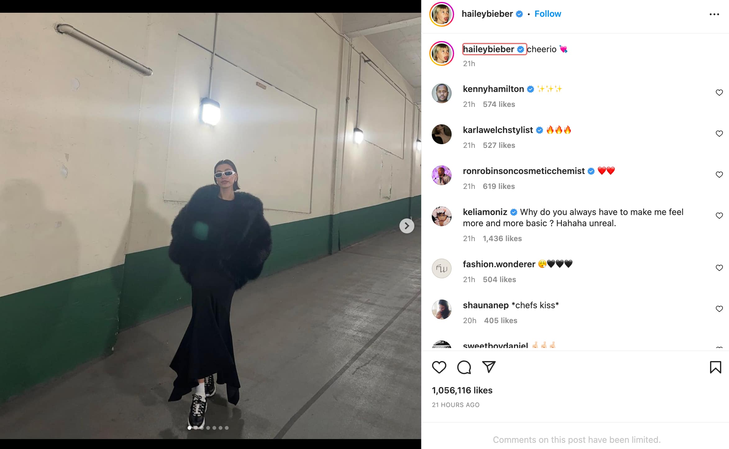 Bieber posted an Instagram photo dump with the caption, ‘cheerio ?’. Her followers noticed right away that ‘Comments on this post have been limited.’ Users believe that her reasoning for this is to avoid the drama and turn a blind eye.