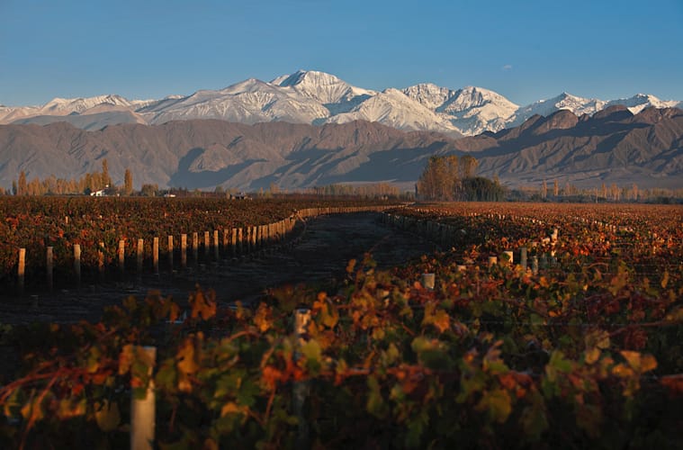 Vines are grown in higher elevations typically have lower yields from the vines. Grapevines do not need a lot of rain to produce complex and delicious wine. In Argentina, the main source of irrigation for vineyards is pure meltwater from the Andes Mountains. The water is pure, helping the wines to be pure by nature’s own design. Just look at how close the vineyards are to the Andes Mountains. This allows winemakers to make premium wines from very unique and interesting areas.