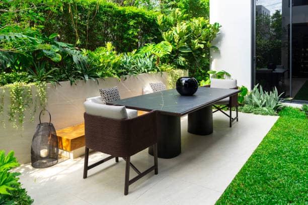 Outdoor sofas with weather-resistant cushions, Adirondack chairs, and swings can make the space feel more inviting. Adding colorful throw pillows and durable rugs can also enhance the comfort and aesthetic appeal of your outdoor area. When selecting furniture, opt for materials that can withstand your local climate and require minimal maintenance.