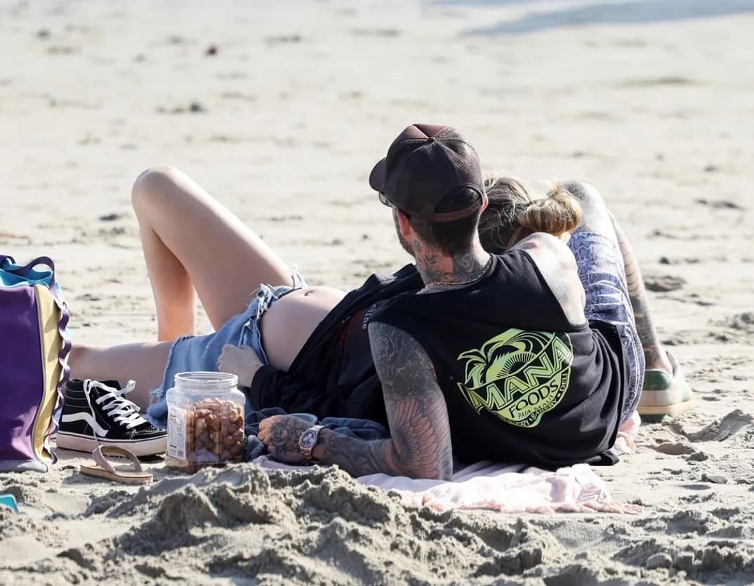 On October 8, Weeks after the Maroon 5 singer refuted allegations of an affair, the pregnant Victoria’s Secret model and he were photographed in central California spending the day by the beach together smiling and cuddling. Behati, who is expecting their third child, sat next to her husband on a blanket in the sand and giggled the entire time.