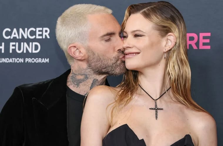 Adam Levine and his wife Behati Prinsloo put on a cutesy display while he held her in his arms and kissed her on the cheek. This week, for the second time since the Maroon 5 frontman’s DM controversy shook their marriage, the couple was spotted indulging in some red-carpet PDA