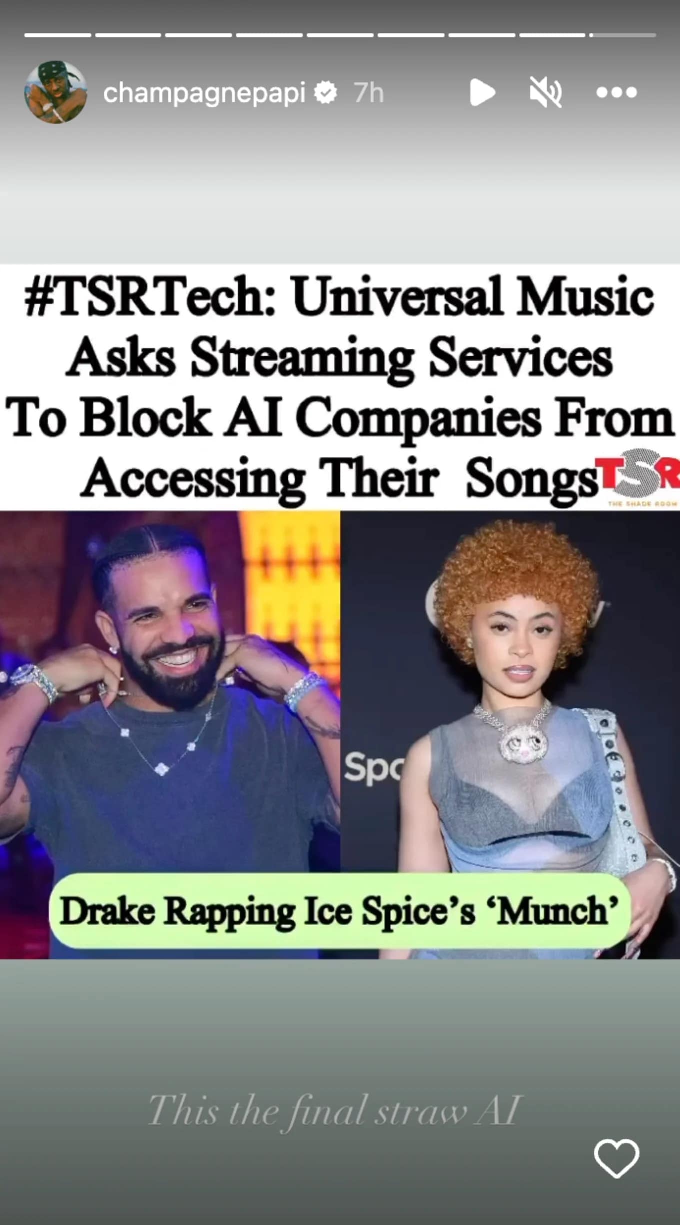 “song is out everywhere. “heart on my sleeve” – ghostwriter”