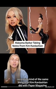 According to this TikTok video posted by user @jessweslie, Barker recently went viral for a photo series that looks super similar to one Kim Kardashian went viral for years ago for Paper Magazine.