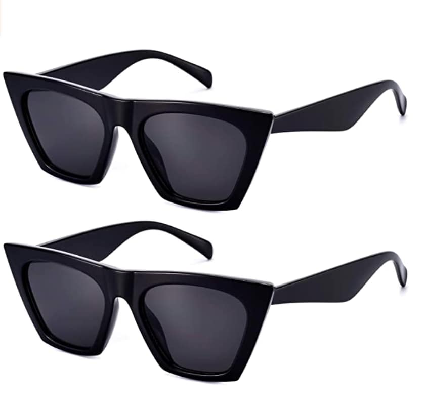 Another option is the Mosanana square cat eye sunglasses. They come in a pack of two pairs and their shape is stylish and can be paired with almost any outfit.
