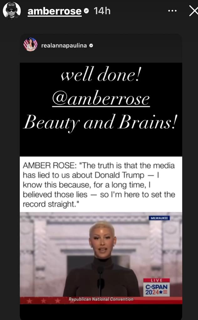 Amber Rose supported Donald Trump at the RNC. Rose told the crowd last night “Research is important!”