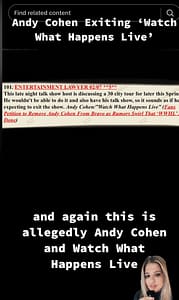 The video claims that a late-night talk show host- allegedly Andy Cohen- is discussing a 30-city tour for later this year. However, it is alleged that he couldn’t do this plus his talk show so rumor has it that Cohen may exit the show, Watch What Happens Live.