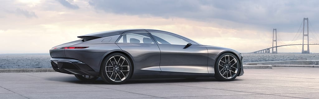 The Audi Grandsphere is the second in a series of concept cars providing a look at the future of first-class automative cars. The design evokes the sense of a private jet for the road with spacious interior and an experience that adapts to the needs of the passenger. It is a highly upgraded sedan model that has level 4 autonomous driving and offers the ultimate spacious ride with the ability to make the steering wheel and pedals disappear.