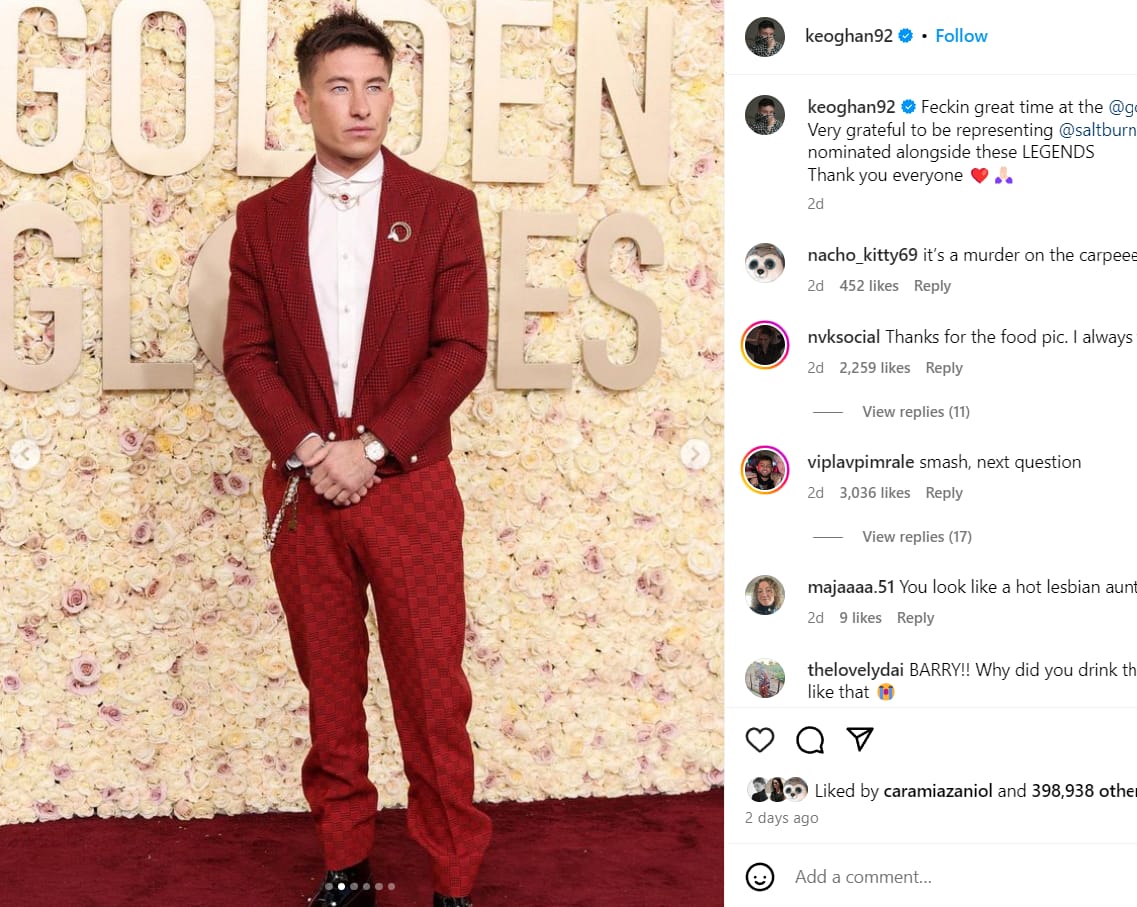 Barry Keoghan’s red carpet appearances are anything but ordinary. Known for his adventurous fashion choices, he effortlessly blends elegance with an edgy, rebellious flair. From bold patterns to unconventional tailoring, Keoghan stands out as a red carpet rebel, challenging traditional norms and injecting a dose of excitement into formal events.