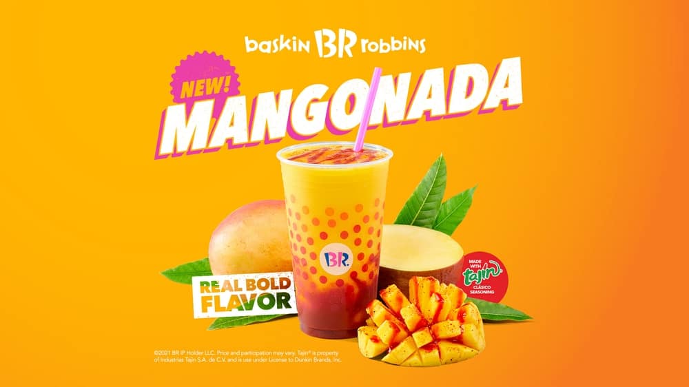 Baskin Robbins launched their new flavour “Mangonada” as a tribute to the traditional Mexican frozen beverage that combines the saltiness of the chamoy, the spiciness of Tajín® Clásico Seasoning and the sweetness of Mango, which is the ingredient of this delicious beverage.