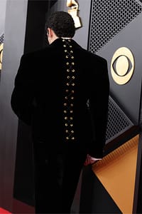 Notably, Bad Bunny made fashion history in a custom Schiaparelli tuxedo, marking the house’s first major menswear look to debut on a red carpet under creative director Daniel Roseberry. The sculptural design translated Schiaparelli’s surrealist couture codes into tailored menswear while signalling a bold expansion of the house’s visual language.