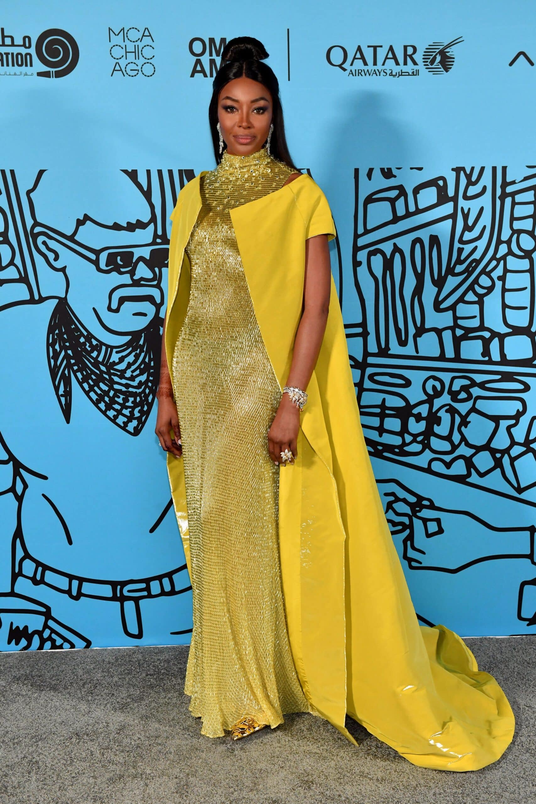 Around the world, colour was used to great effect. In Doha, Naomi Campbell made a splash in Valentino Haute Couture at the opening night of Virgil Abloh’s ‘Figures of Speech’ exhibition. A column of yellow chiffon, glittering with tube pearls dégradé, Campbell’s gown would have been epic on its own. Add on a neon lurex cape, though, and you have the makings of a moment.