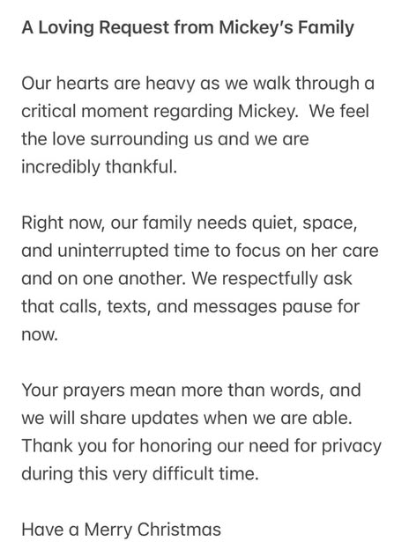 According to information shared by her family, Mickey Lee had been hospitalized in intensive care following multiple cardiac arrests before passing away on Christmas Day. While further medical details have not been publicly disclosed, the sudden nature of her death has sparked widespread sadness and concern among fans who followed her journey.
