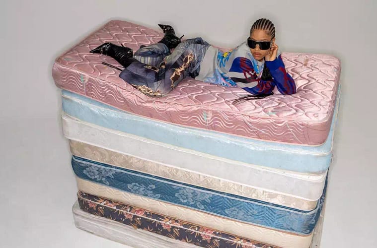 The collaboration is announced through a campaign that stars Oklou, Baby Sosa, and designer West Adler. Hendrik Schneider and Bladee provided the styling for the advertisement, which was shot in Los Angeles.