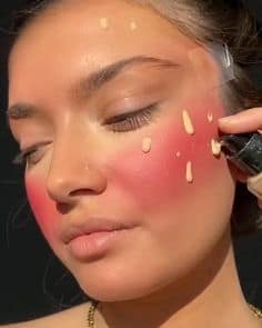 This trend has been going viral all over TikTok, with creators also applying the blush over top of their forehead and chin and covering it up with foundation or concealer for a sun-kissed, hint of colour all over the face.