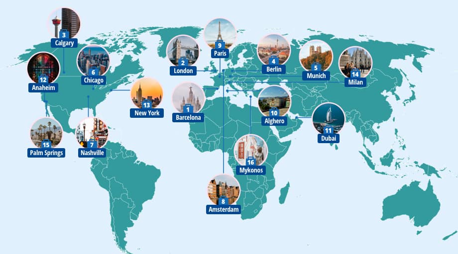 From the cost of a hotel, beer, bottle of wine, and starting taxi fares to the number of spas and clubs in the city, the research includes the most important parts of a trip to bring you the top locations, so you can make your decision quicker than you can say ‘passport’!