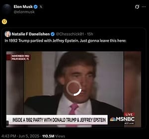 Musk also followed up with a video clip on X here of Trump and Epstein from years back.