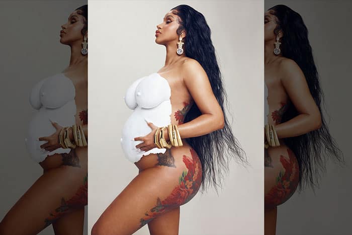 During the 2021 BET Awards, Cardi revealed that she was pregnant. As a surprise announcement, she appeared onstage with Migos and later posted several maternity photos to Instagram. The rapper wore a catsuit with an embellished cutout revealing her pregnant belly during her performance of “I Like It.”