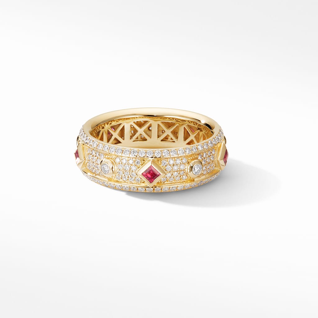 Modern Renaissance Narrow Ring in 18K Yellow Gold with Diamonds and Rubies [$5,500.00 CAD]