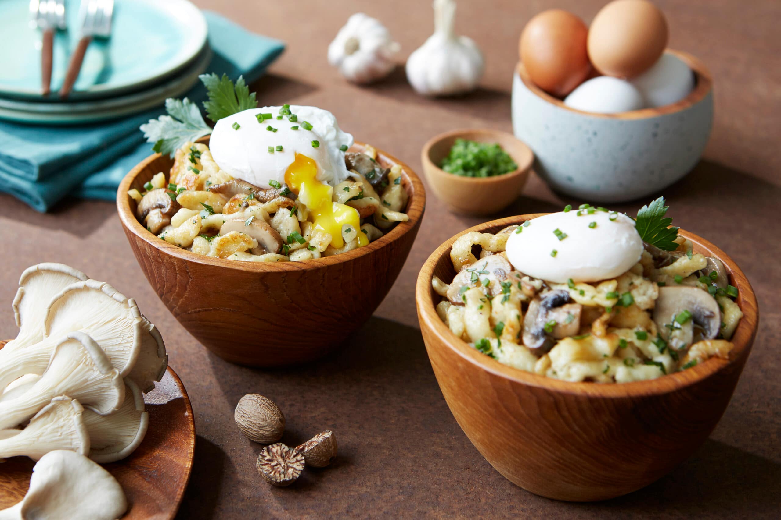 Inspired by her German heritage, Chef Thea VanHerwaarden’s mushroom spaetzle recipe is the perfect comfort recipe. Topped with a runny, poached egg, this flavourful dish will be a new family favourite.