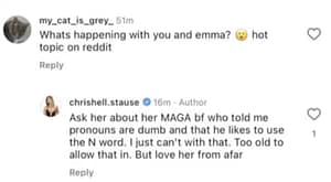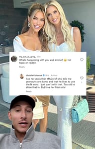 As shown in this TikTok video (@giletslays) the incident began when a user questioned whether the two were still friends, prompting Chrishell to respond with a comment that has since garnered significant attention. She wrote, “Ask her about her MAGA boyfriend who told me pronouns are dumb and that he likes to use the N word. I just can’t with that. Too old to allow that in. But love her from afar.”
