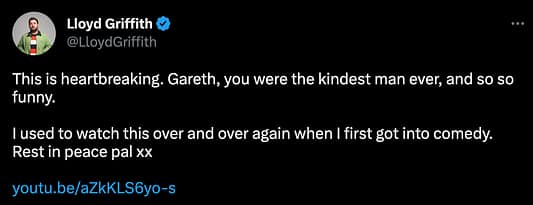 Following Gareth’s death, many comedians and fans showed their regrets on social media. “This is heartbreaking. Gareth, you were the kindest man ever, and so so funny. I used to watch this over and over again when I first got into comedy. Rest in peace pal xx”, comedian Lloyd Griffith wrote on Twitter.