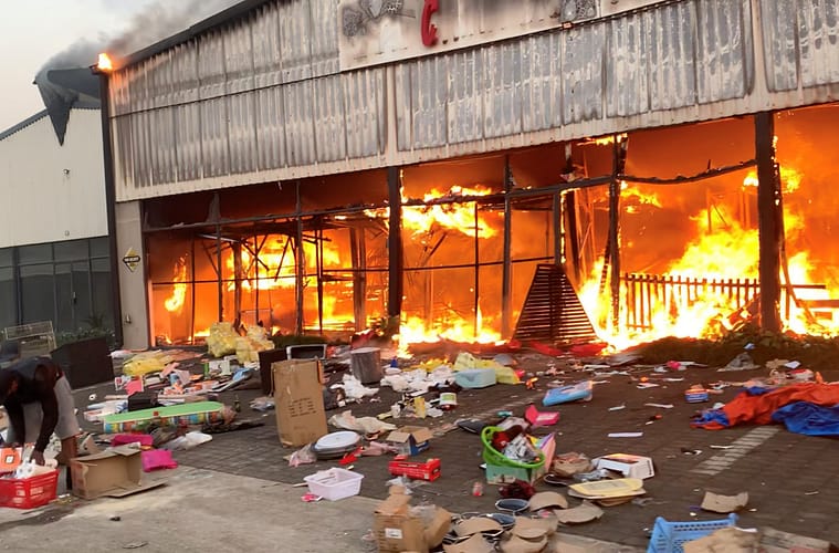 Businesses, warehouses, and shopping malls have been ransacked and some even burned down in major city centres across the country. Much of the chaos is localized in Zuma’s home province KwaZulu-Natal, as well as Johannesburg and the surrounding Gauteng provinces.