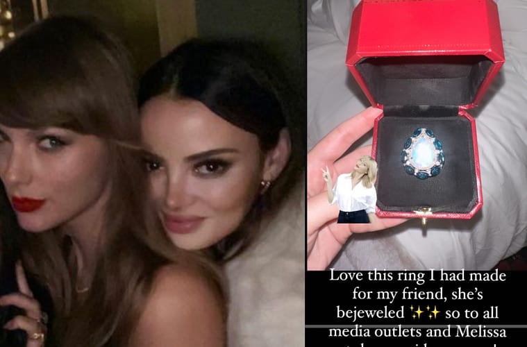 As the TikToker revealed, Teller seemingly named Deux Moi, the infamous gossip platform that reports on celeb blind items, news, and allegations. According to Teller, Deux Moi is allegedly Melissa Lovallo. Allegedly, it was rumored that Swift was gifted this ring by boyfriend Travis Kelce but Teller set the record straight by posting a video of the ring stating that she loved “the ring I had made for my friend” – insinuating it was for Swift.