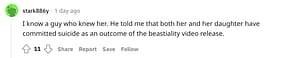 In recent unconfirmed news, rumours have been running rampant online regarding if the woman in the video has taken her own life as a result of the outcome of the bestiality video release. Keep in mind, this alleged news has yet to be confirmed.