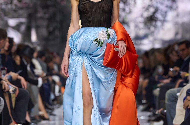 The closing look distilled Anderson’s aesthetic most clearly. Elongated, minimal, and quietly commanding. It distilled everything Dior has historically stood for—discipline, proportion, and controlled femininity—into a single, resolved statement. Meticulous draping sculpted the bodice, drawing the fabric inward to a sharply cinched waist that recalled Dior’s foundational emphasis on structure and silhouette. From that anchor point, the skirt unfolded into a cascade of hand-applied petals. Each petal placed with technical precision to build volume without excess, creating movement while maintaining control. In closing the show this way, the gown reaffirmed Dior’s core language: elegance as the result of construction, restraint, and an unwavering commitment to form.