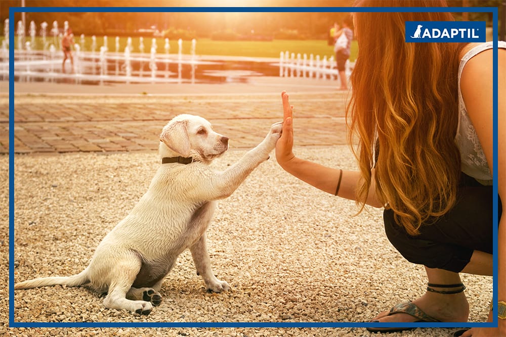 - Consider Calming Pheromones – Pheromones play a vital role in canine health and influence animals’ behaviour and emotional state. Surround your dog with copies of these appeasing pheromones, by having them wear an ADAPTIL collar, to help decrease their stress and anxiety.