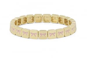 A token of love with just the right touch of sparkle, this dainty pink bow bracelet from Lisa Gozlan is a sweet and sentimental gift your bridesmaids will adore. Featuring a soft pink bow set on the signature square bead and finished with a delicate gemstone at the center, it’s the kind of piece that feels both playful and meaningful— obsessed!