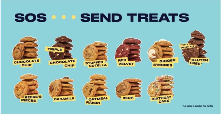 Menu items feature a variety of artisanal stuffed and gluten-free options, sold in packs of 6, 12 or 24 for same-day delivery or via a first of its kind monthly cookie subscription service to appease all tastes and diets. While the cookie dough is made from scratch out of the SOS TREATS Central Kitchen in Vaughn, the dough is baked on-site at various satellite locations daily, enabling SOS TREATS to maintain the highest quality and consistency every day.