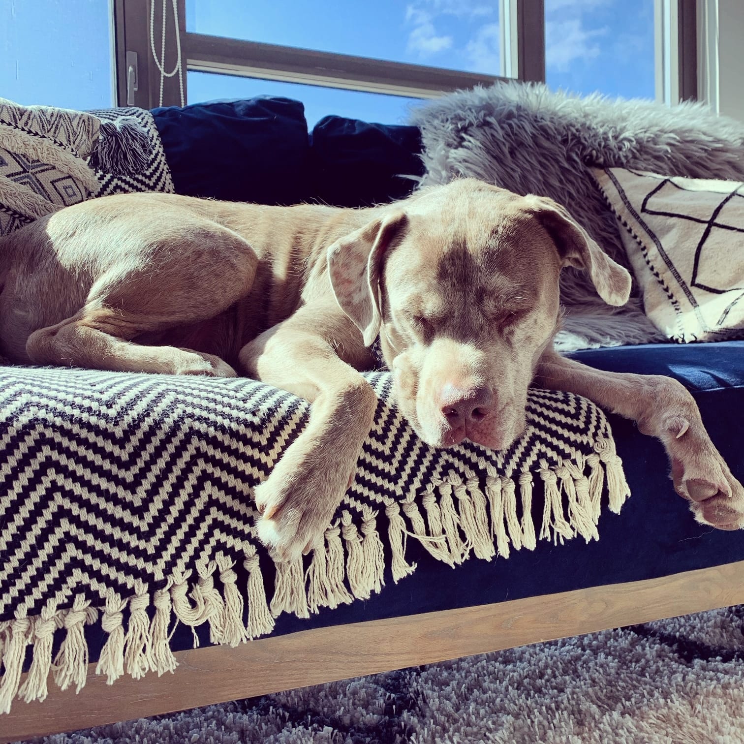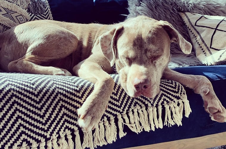 “Earlier this year, I lost my best canine pal suddenly and unexpectedly. Though I‘ve always adopted dogs in their retirement years and suffered this scenario a handful of times before, this was notably tougher than I could have ever expected. I negotiated with myself daily, but decided definitively that I would give myself a year before considering another adoption. Three weeks later, I saw Bert for the first time on Instagram. Four weeks later, I was on the phone with Redemption Paws who shared Bert’s story of months in foster care without any applications. He was stubborn, sassy, and wise beyond his years; he was perfect. Bert came home three weeks ago and the timing couldn’t have been more serendipitous. Bert has been the best thing that could have happened to me, and I‘d like to think he feels the same, despite his personal limit of three minute maximum for cuddles,”