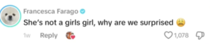 July 3, 2024– Francesca Farago is taking to the comment section to voice her opinion on Call Her Daddy’s Alex Cooper. According to this TikTok video posted by user @arianna_lillie, there may be some drama brewing between the two online stars.