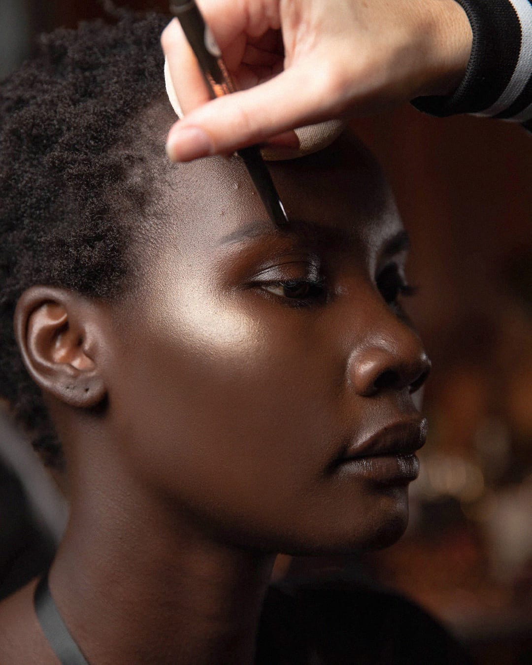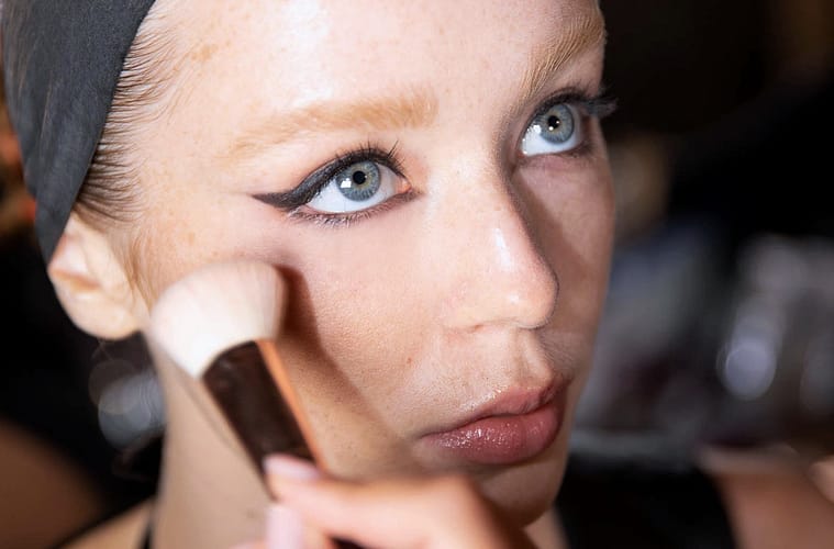 “Christian’s collection was inspired by Italian beauty—strong, yet sultry and romantic—so we wanted to help bring that to life with a look evoking summer in the city. We combined a bold, blown-out smoky eye with humidity-flushed lips and dewy, glowing cheeks.” – Sofia Schwarzkopf-Tilbury