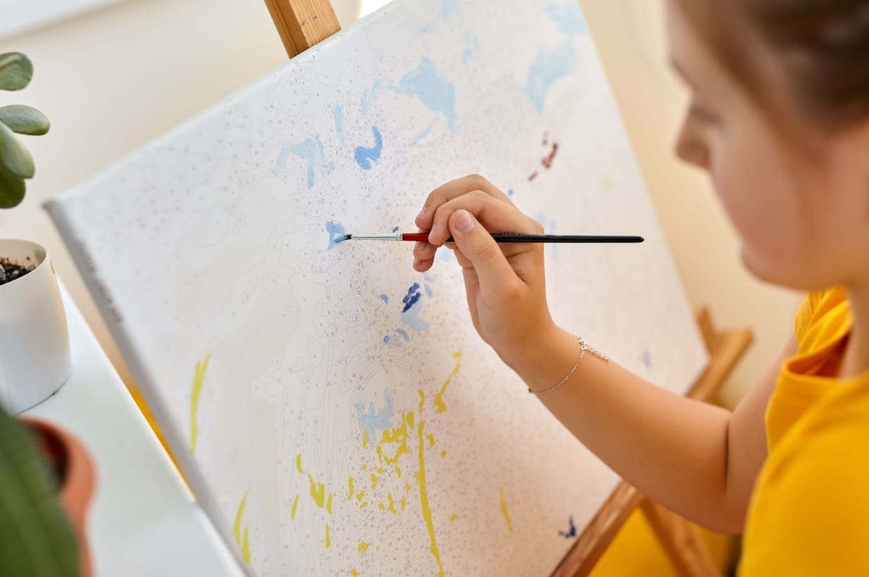 To get started with paint-by-numbers, you will need some essential tools, and the dedicated kit is a good place to start. You can find them online or in specialized shops, and they usually include all the necessary accessories like a painting canvas with numbered boxes, paint pots, and brushes.