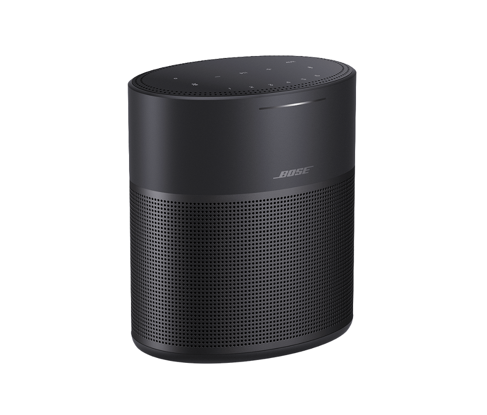 A small yet powerful Bose speaker with 360° quality sound. The speaker can be controlled by either voice, touch, or an app, and it comes with voice assistants like Alexa and Google Assistant. It comes in either silver or black tones.