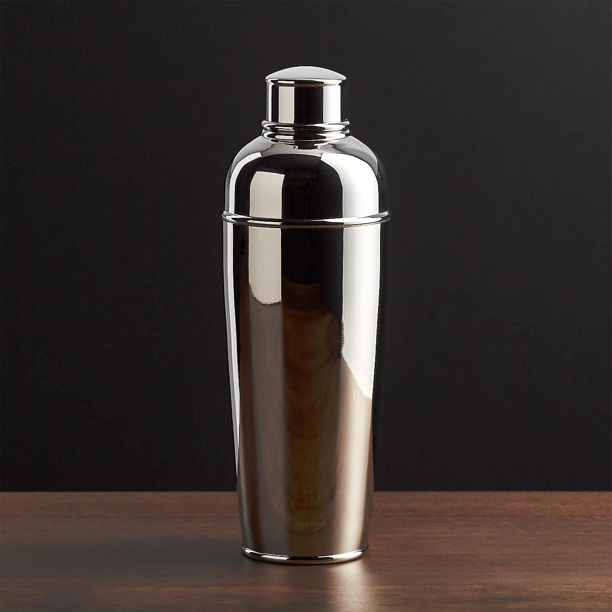 Designed for Crate and Barrel by Ana Reza-Hadden, this stainless-steel cocktail shaker is a timeless piece with a gleaming mirror finish.