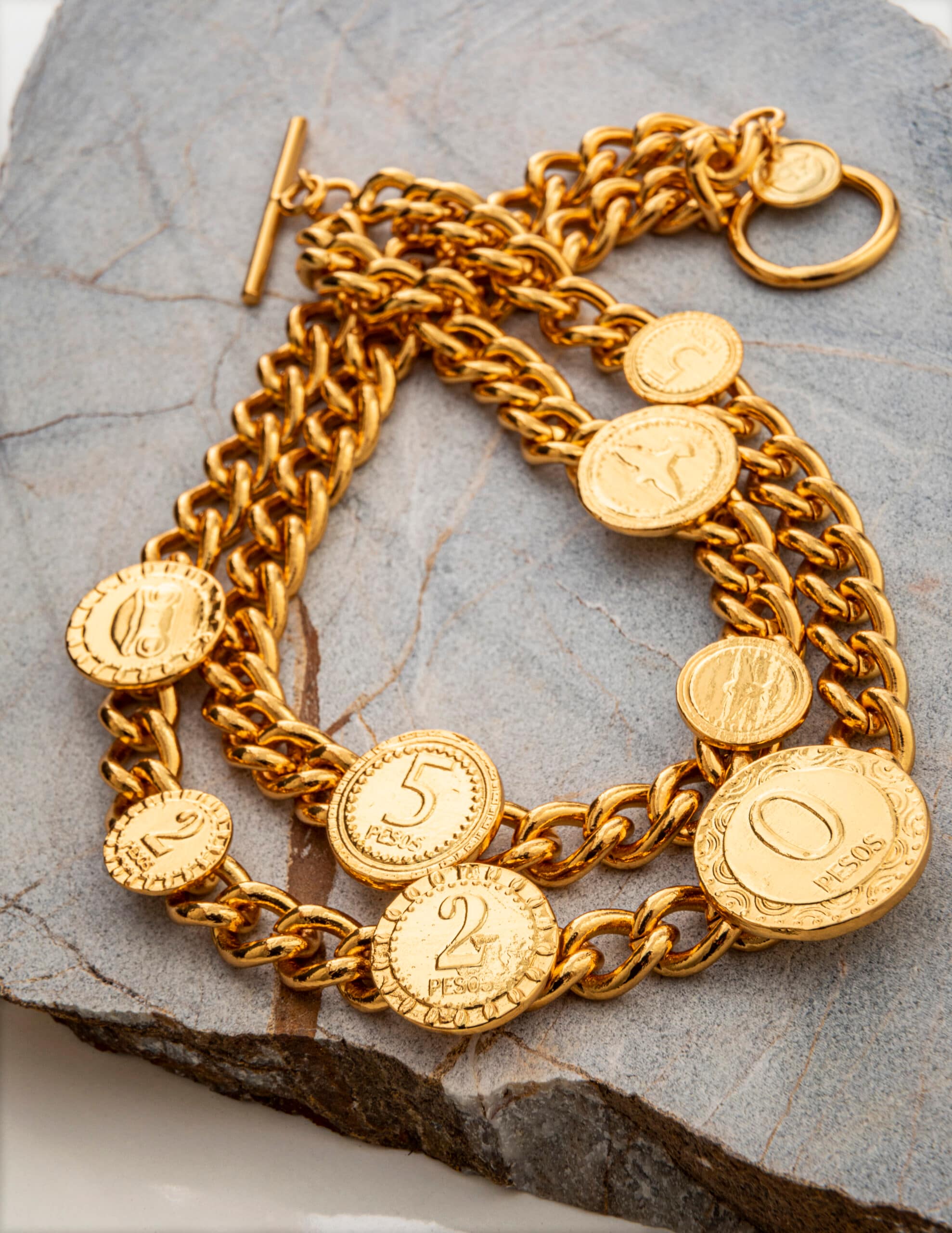 The Nummus Choker is a distinctive piece in the Originem collection, whose designs are inspired by Colombian colonial and present-day currency. The coins are engraved with animals such as the macaw and frog, which represent one of the finest and rarest species in Colombia.