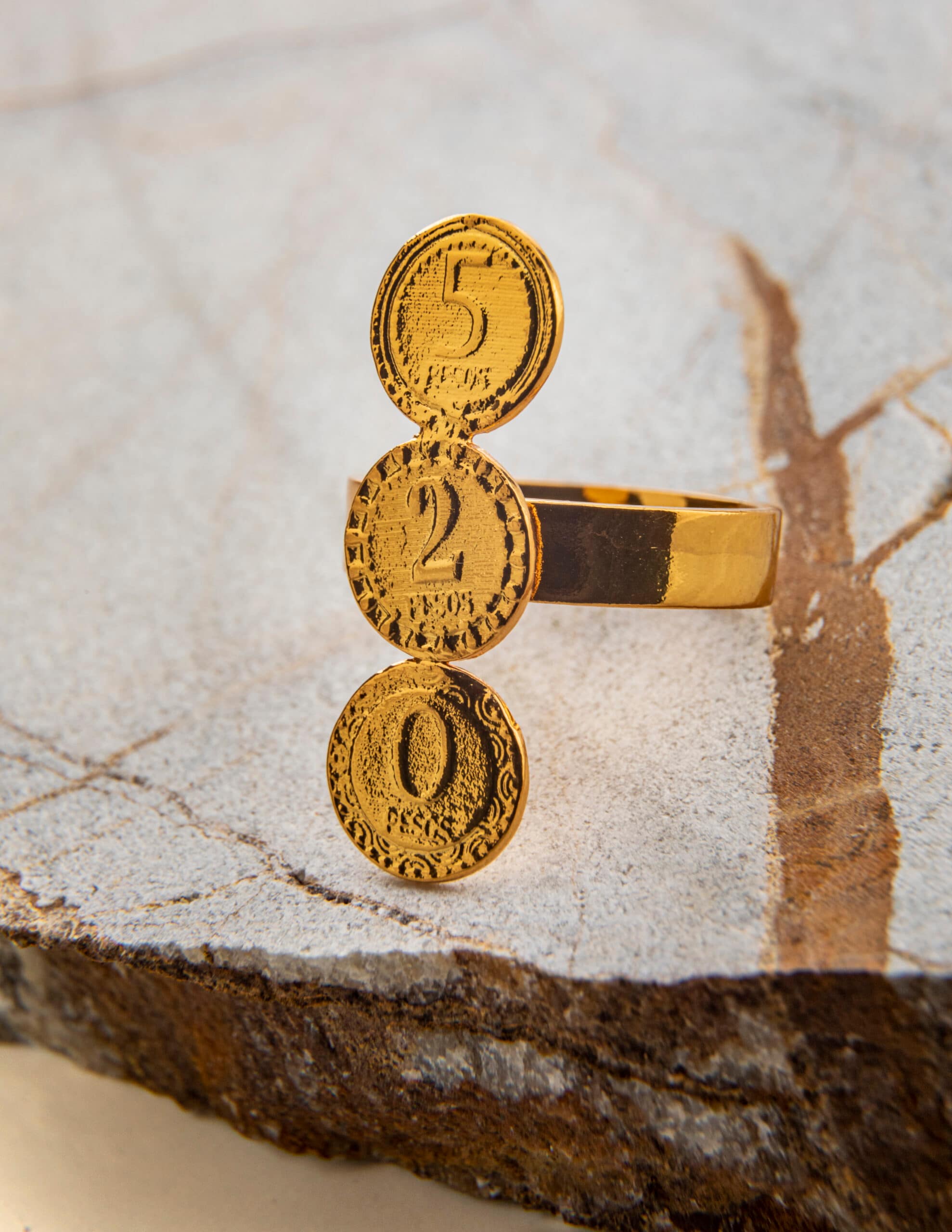 The Nummus Ring features three coins engraved with numbers that have historically been known in Colombian currency, and whose value directly relates to the creation of the brand.