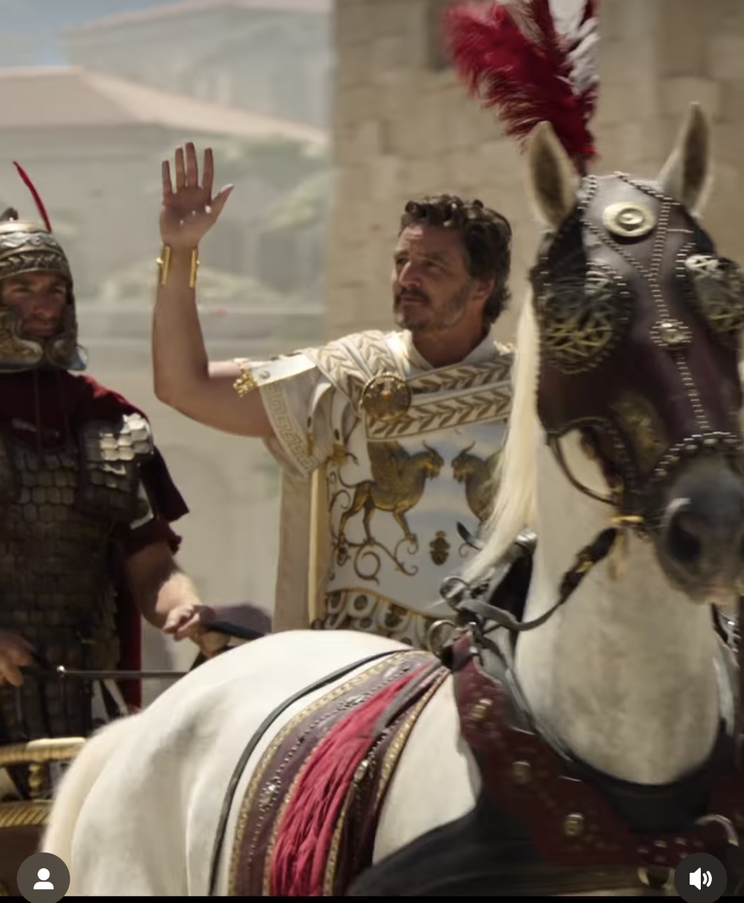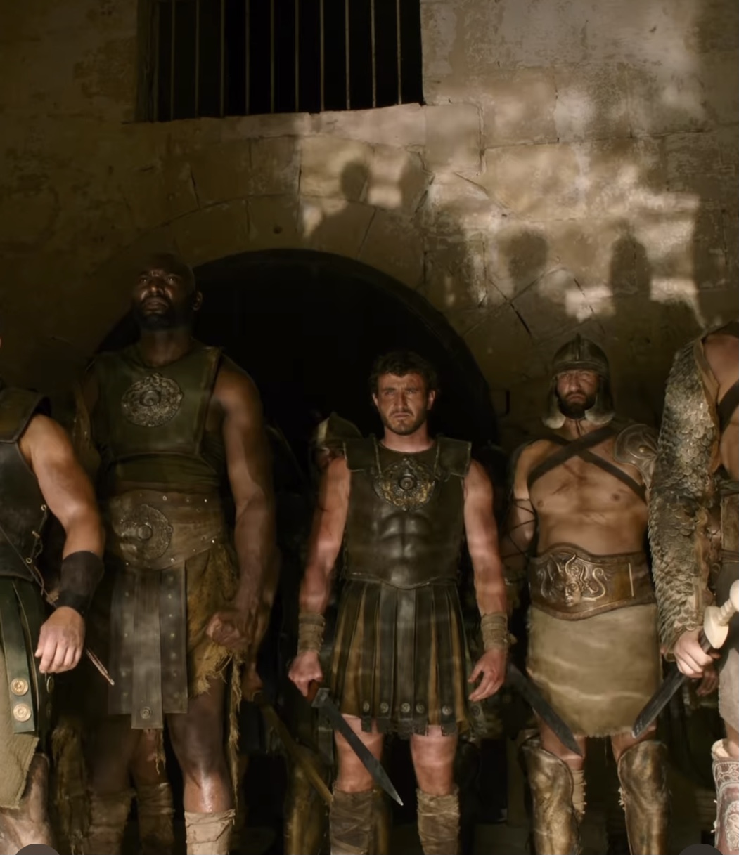In the trailers, Luscius can be seen reflecting on a time when as a child he saw a similar Maximus, who was his hero – fighting as a gladiator in the Roman Colosseum.