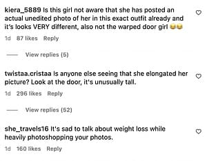 The video quickly gained traction, with users across platforms, especially Instagram, flooding the comments section of Gypsy’s post. Many alleged that the photo had been edited to exaggerate her weight loss, with one user commenting, “It’s sad to talk about weight loss while heavily photoshopping your photos.”