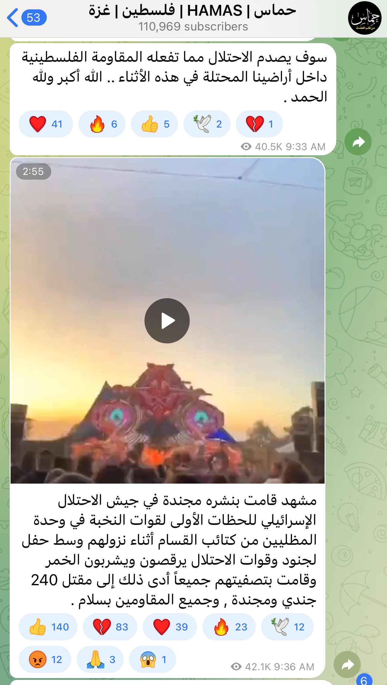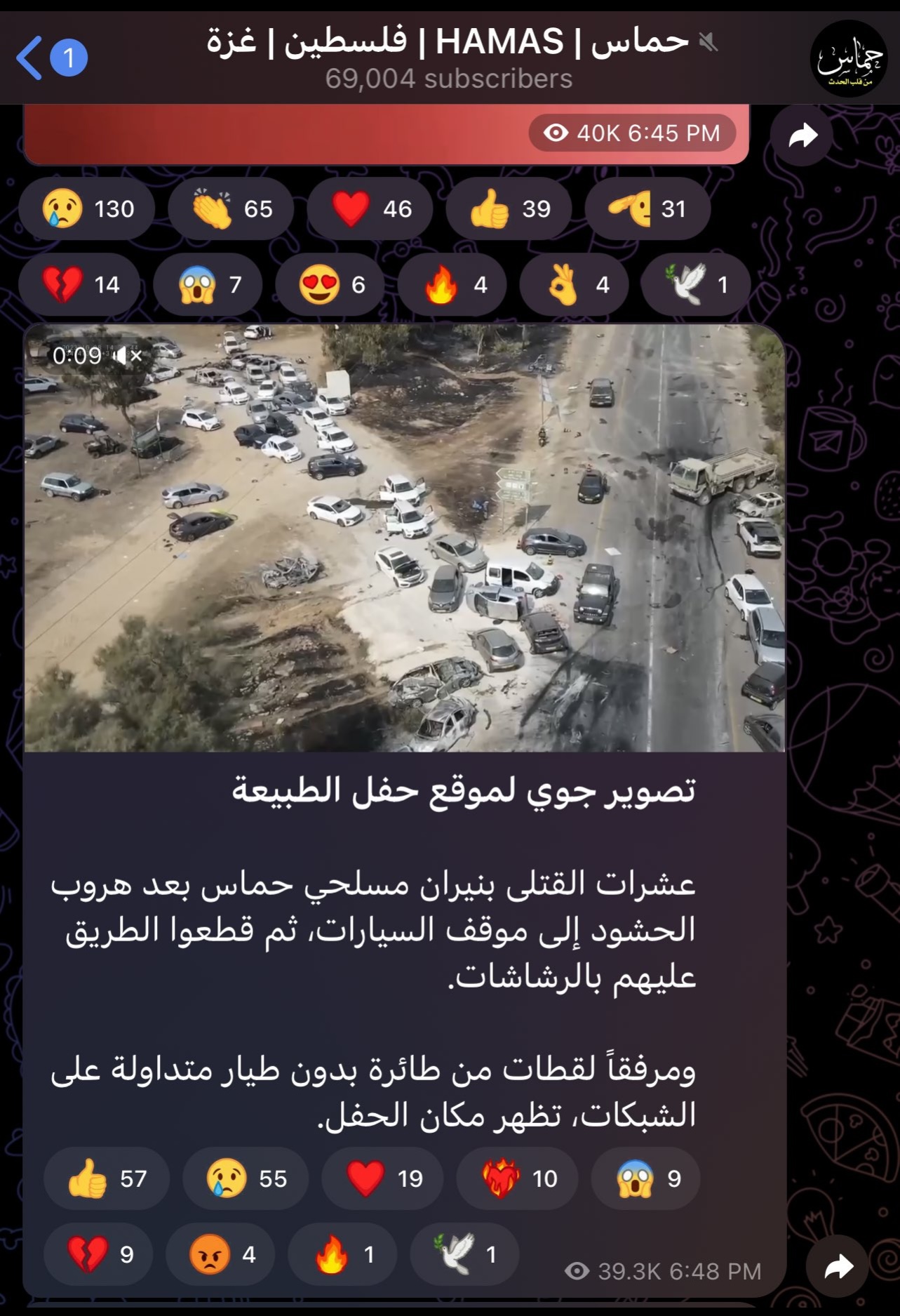 - Original post on Telegram of them admitting to murdering innocents on October 7th.