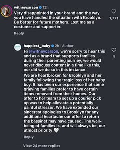 In response to the controversy, Happiest Baby posted a statement on social media, expressing their sorrow for the tragic loss and explaining their side of the situation. The company stated that it has been their experience that some grieving families prefer to have certain items removed from their homes to avoid reminders of the tragedy. They reportedly offered to arrange for a courier pickup to help alleviate any potential stress or discomfort caused by having the bassinet in the home.