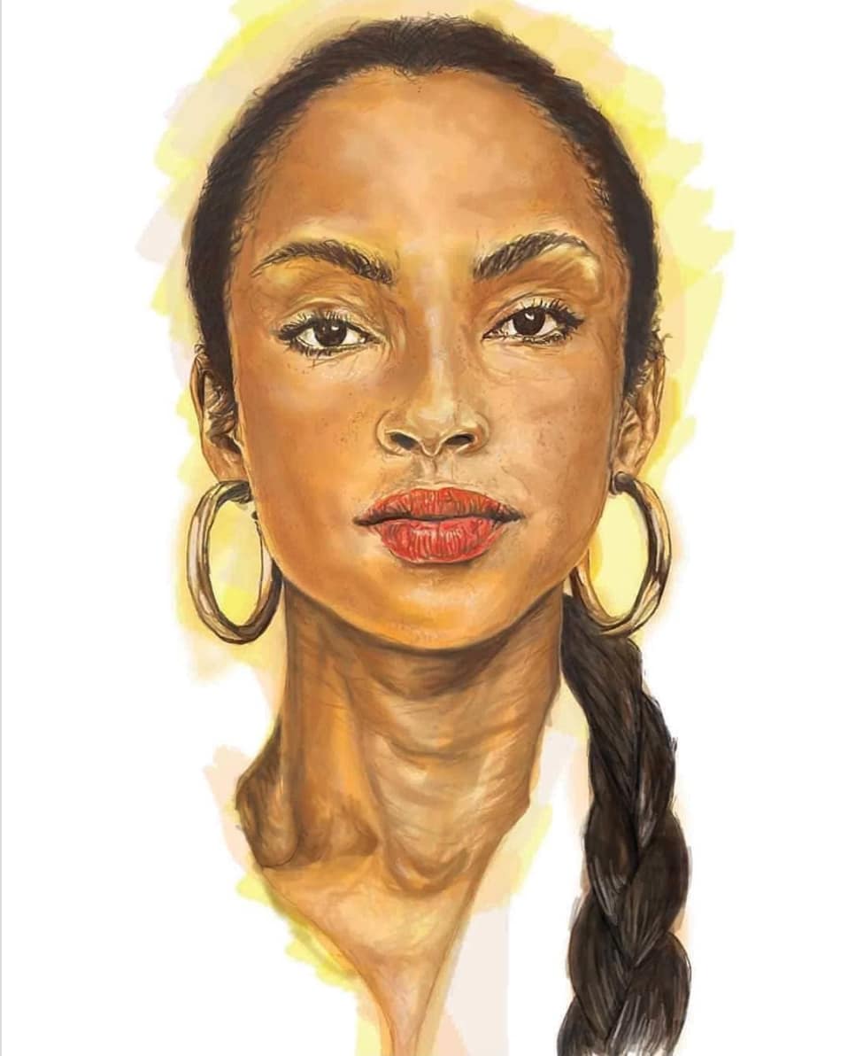 Jaden and Willow Smith “I planned to paint both separately for many reasons, but I found a dope photo of them together and a variation of this vision hit me. These two have done a lot of good aside from the accolades accumulated throughout their lives…Due to all the different abilities, these two have with instruments, music, acting, etc… I want to call this piece “VERSATILITY”.”
