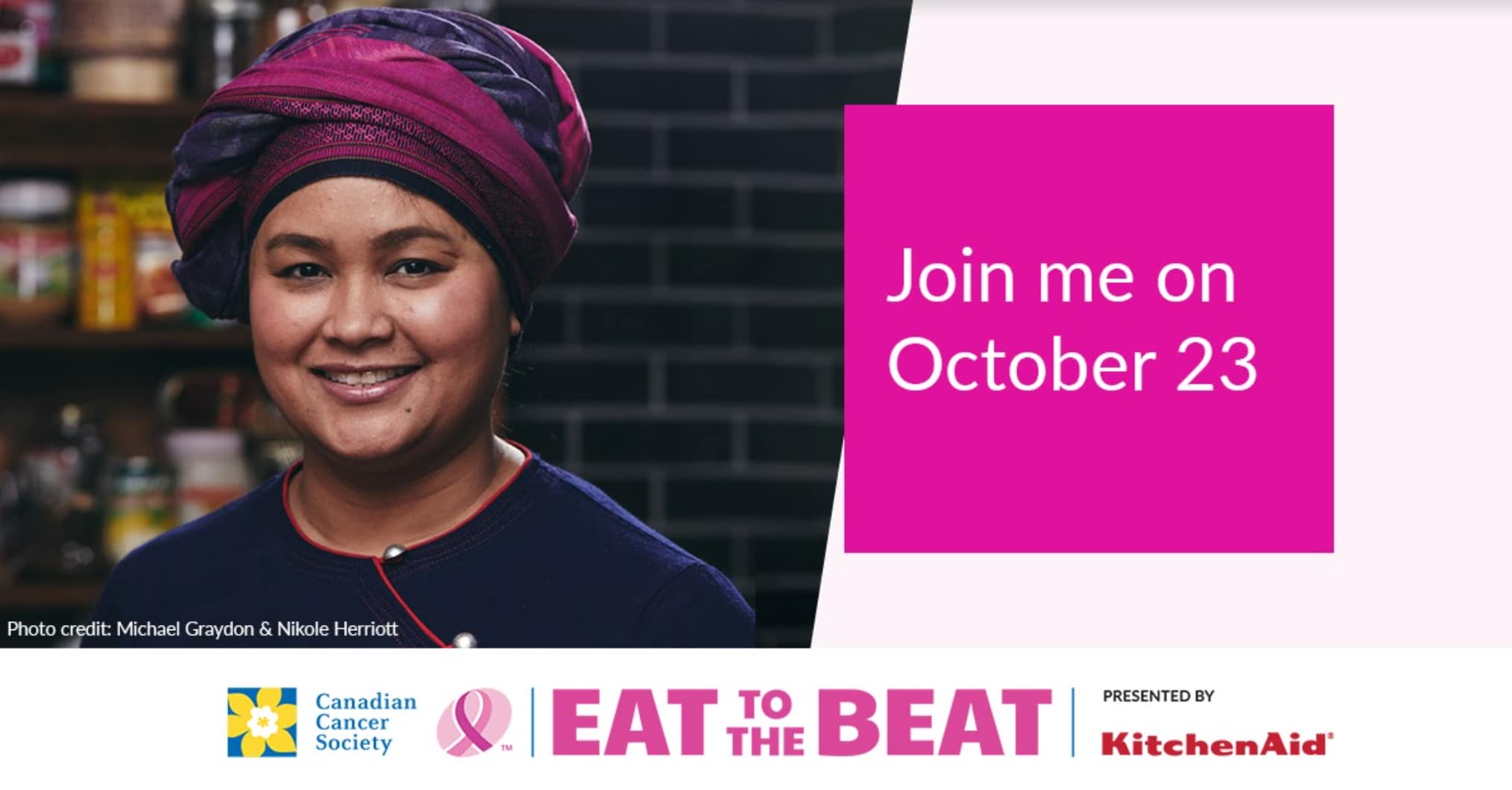 You can purchase tickets and donate to the cause at eattothebeat.ca. On Saturday, October 23, attendees will receive a private live stream link to join the online cooking masterclass and a live Q&A session with each chef. You can also follow KitchenAid_CA, eattothebeatccs, and cancersociety for more updates.
